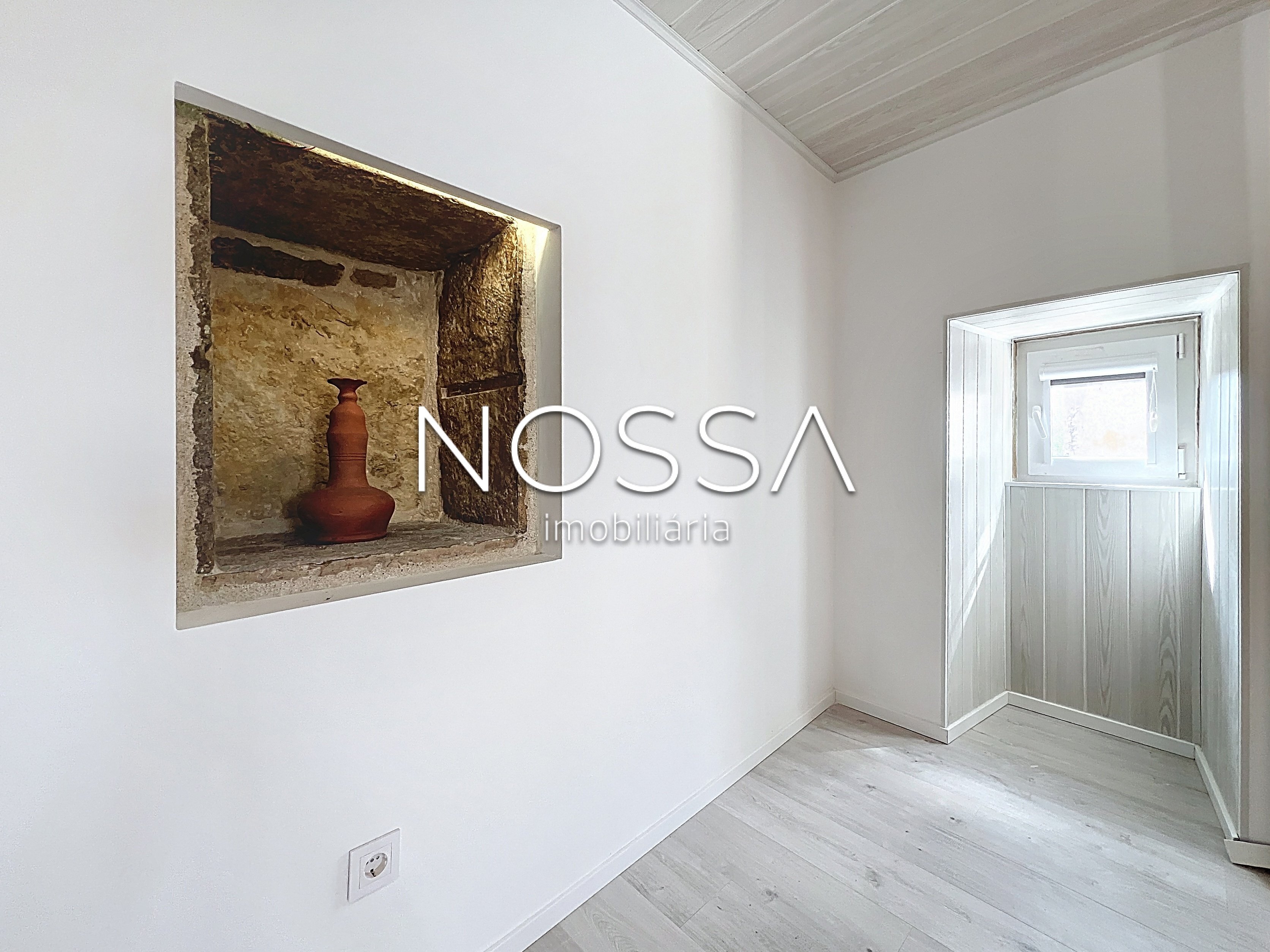Composta por três grandes quartos, duas casas de banho, cozinha open space, lavandaria e espaço exterior, onde irá encontrar uma lareira rústica em pedra de chão, se pretender, tem espaço para colocar uma viatura.